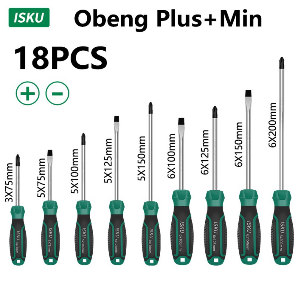 Obeng set 18 pcs 75-200mm Minus plus screwdriver set tip magnetik